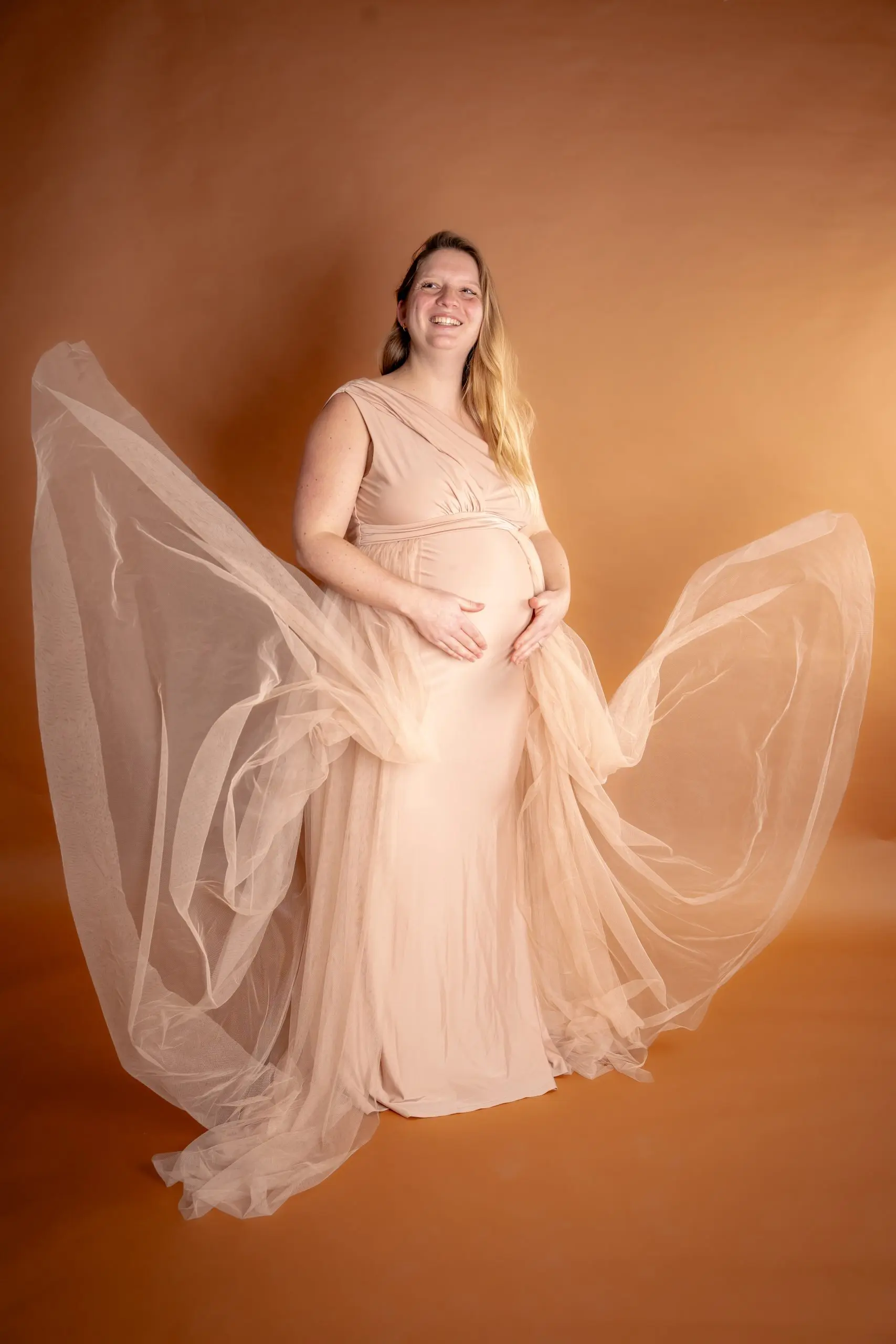 Notre studio professionnel offre un cadre intimiste et confortable pour votre shooting maternité. Éclairage artistique maîtrisé, fonds neutres ou colorés, accessoires élégants à disposition. Nous créons des portraits grossesse intemporels et raffinés. Ventre nu ou en robe fluide, positions confortables adaptées à votre terme. Température agréable, musique douce, ambiance détendue. Votre partenaire et vos enfants sont les bienvenus pour des photos de famille touchantes. Séance d'une heure, plusieurs tenues possibles. Résultats garantis quelle que soit la météo.