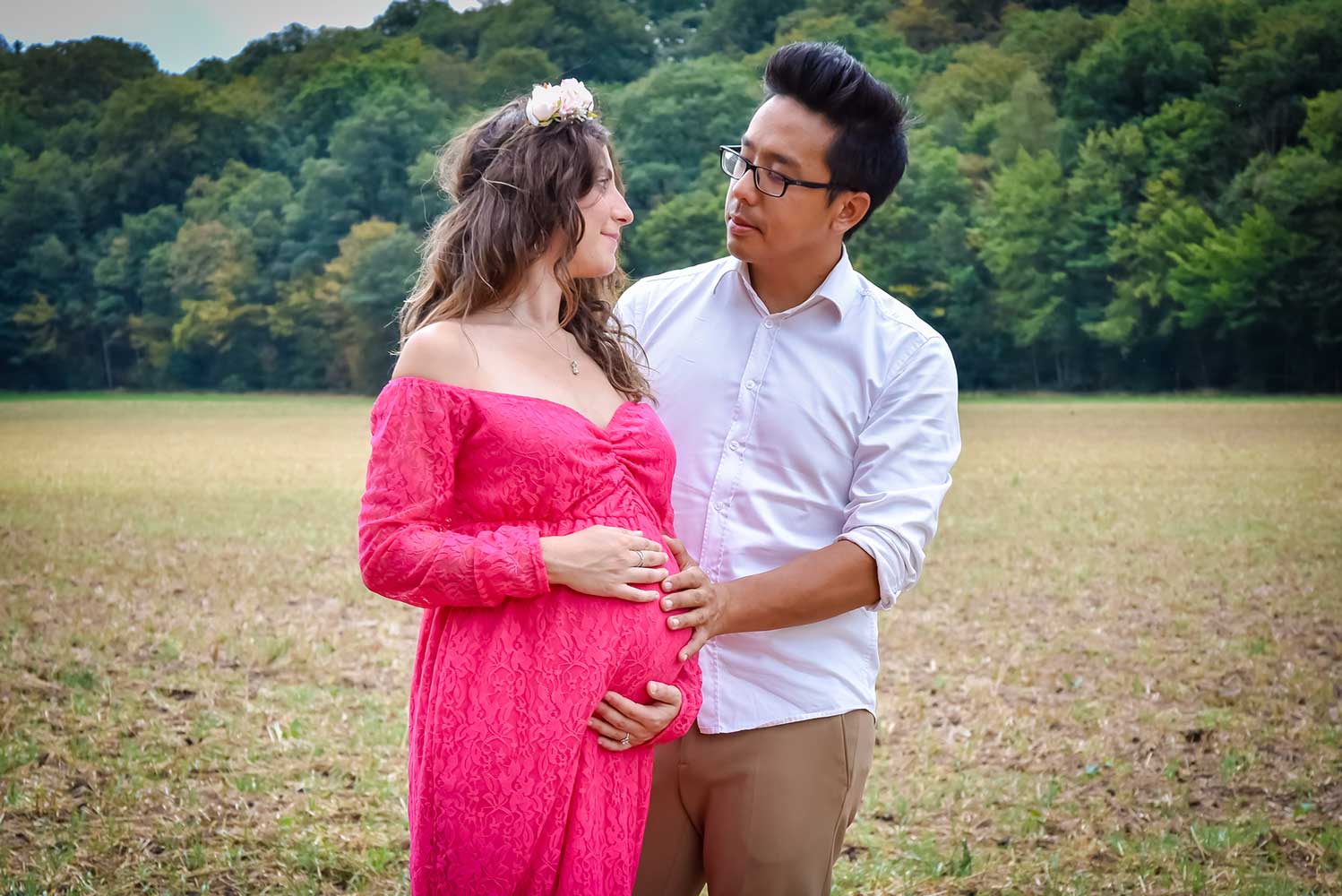La nature sublime votre grossesse. Nous vous proposons des séances photo en extérieur dans des lieux magnifiques : parcs verdoyants, champs de fleurs, bord de mer, forêts enchantées. La lumière naturelle caresse votre peau et révèle votre éclat. Nous planifions ensemble le meilleur moment (golden hour) et le lieu idéal. Shooting grossesse couple romantique ou en famille joyeux. Robes longues fluides, couronnes de fleurs, voiles au vent. Des images poétiques et authentiques. Session de deux heures pour profiter pleinement du moment.